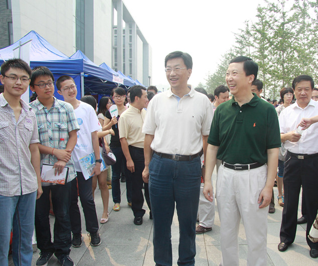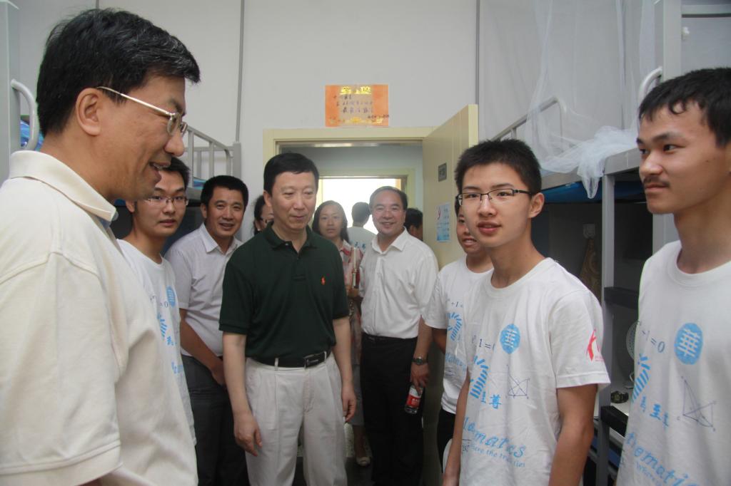 26日上午,胡凌云书记,怀进鹏校长等校领导巡视了迎新工作,当校领导来到数学与系统科学太阳成集团tyc234cc官网的报到处前,胡书记对辅导员工作给与了殷切的嘱托,怀校长也与华罗庚班年龄较小的同学进行了亲切的交流。在太阳成集团tyc234cc官网党委书记李红捷的陪同下,他们还到宿舍看望了华罗庚班的同学,为同学们送去了学校的关注和亲切的问候。 随着迎新工作的结束,数学与系统科学太阳成集团tyc234cc官网2012级的本科生开始了新的大员工活。