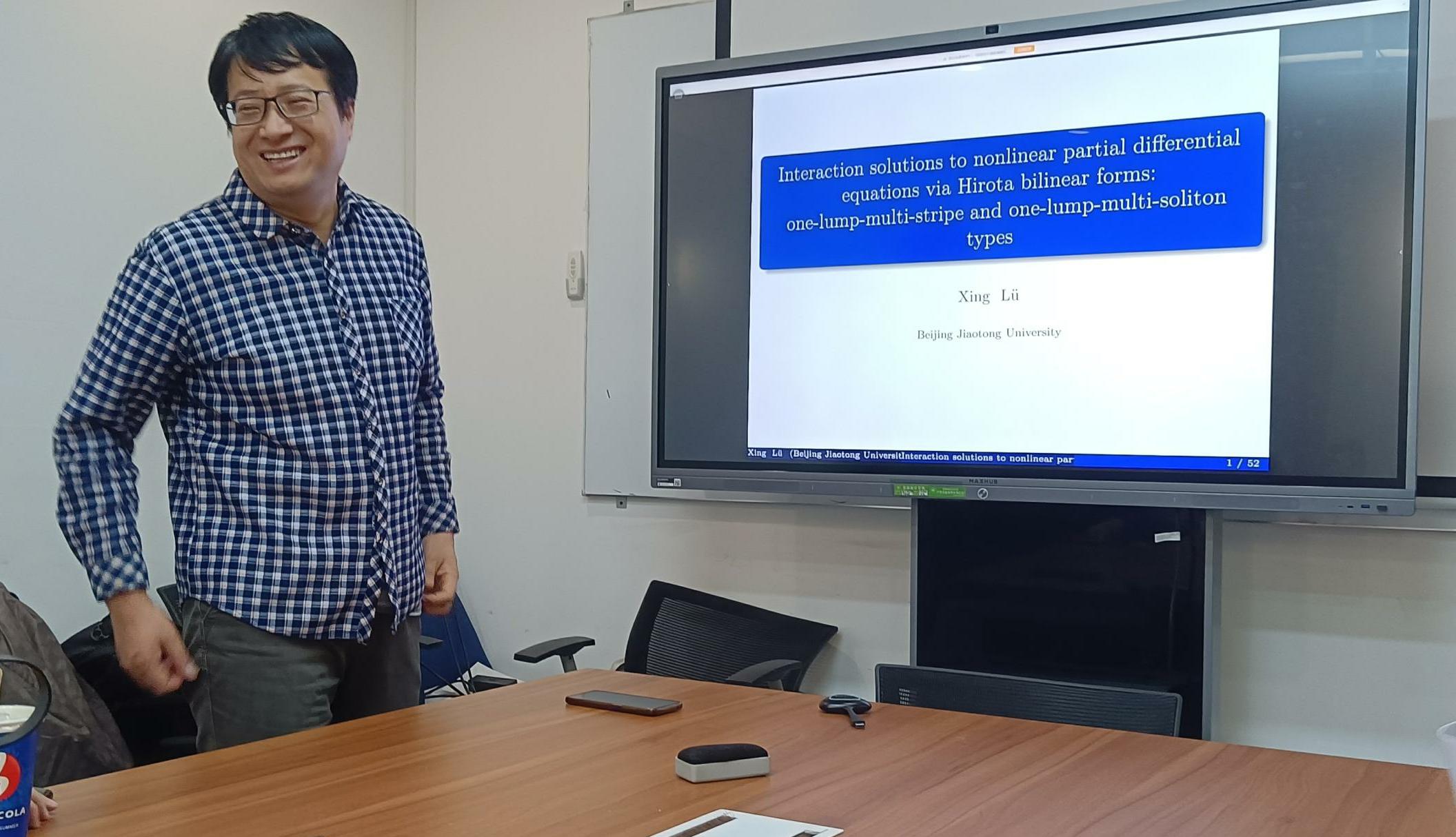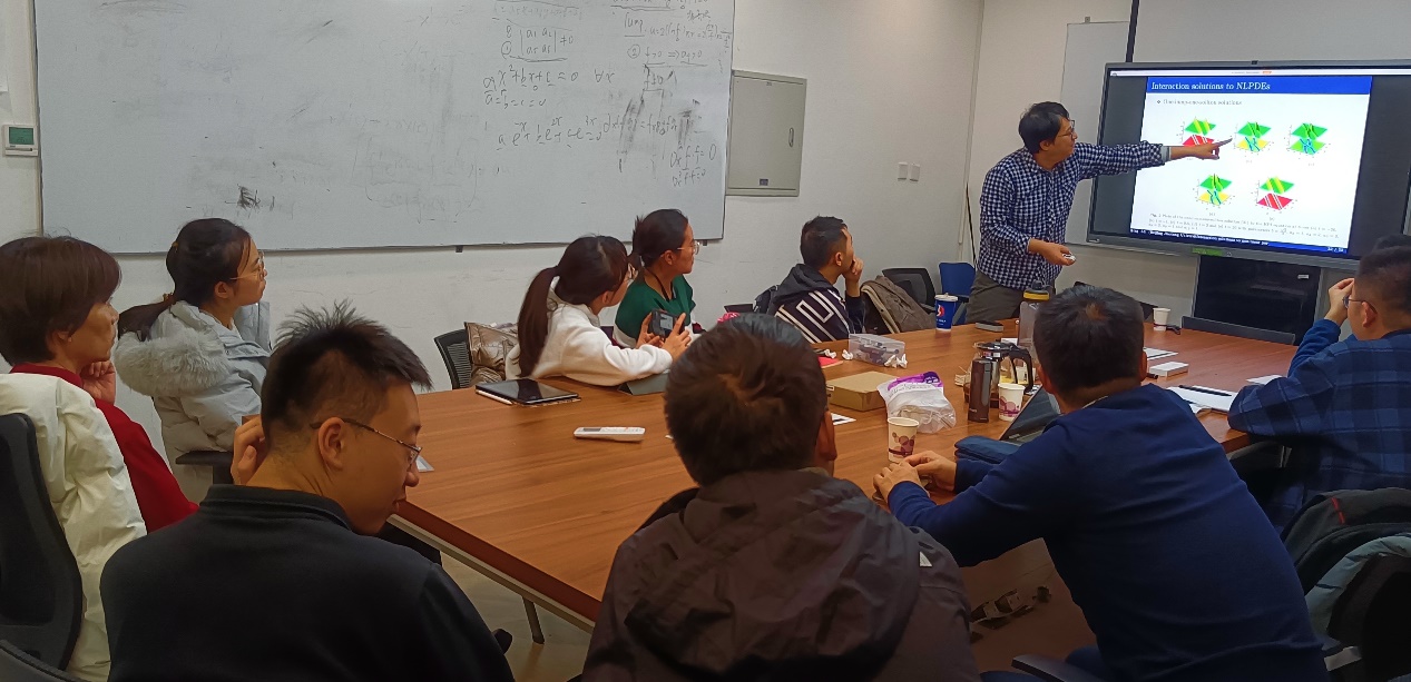 11月15日,北京交通大学数学与统计太阳成集团tyc234cc官网吕兴教授,受邀为应用数学系师生进行了“Interaction solutions to nonlinear partial differential equations via Hirota bilinear forms: one-lump-multi-stripe and one-lump-multi-soliton types”的学术报告。 报告在E602举行,由魏光美老师邀请,李翠萍老师主持,相关研究领域的师生参加了本场报告。