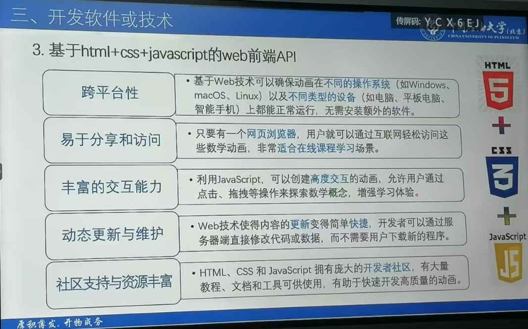在讲座中,刘教授分享了自己带领课程团队20多年来使用多个常用数学教学演示软件平台开发大学数学课程可视化的教学实践经验,并总结了各个平台的优缺点,着重介绍基于html+CSS+javascript的大学课程(包括高等数学、线性代数、概率论等)中的多个知识点的可视化交互演示平台开发与应用,并现场演示了10多个知识点的可视化结果。这些可视化成果对将抽象的数学概念和数学理论直观化、通过员工动手参与实验演示,调动学习积极性,提高学习效果起到了显著的作用。