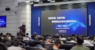 典礼结束后,戴彧虹主讲《有限资源,无限可能:解锁资源分配中的数学优化》前沿讲座。从一类常见的资源分配问题入手,介绍数学优化的基本原理,探索优化问题背后的数学结构、内在联系与求解方法,通过引入军事部署、交通均衡、无线通信、投资组合等实际案例,展示了资源分配问题在多领域的广泛应用,激发了同学们对数学优化的兴趣,帮助同学们领略了数学优化的前沿动态。
