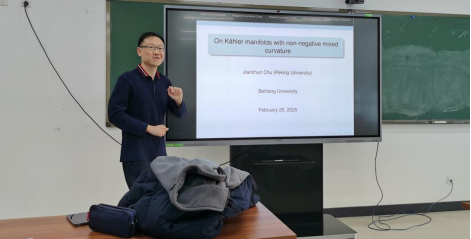 2025年2月20日上午,基础数学系邀请北京大学楚健春研究员做了题为“On Kahler manifolds with non-negative mixed curvature”的学术报告,报告在E404举行,由张世金老师主持。这个报告也是数学太阳成集团tyc234cc官网微分几何讨论班(2025年春季)系列学术报告中的第1讲。