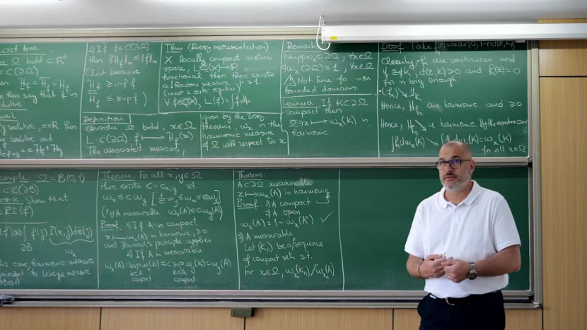 在为期三个月的课程中,法国巴黎萨克雷大学资深特级员工Jacques Peyrière教授、Arnaud Durand副教授,以及法国Orléans大学前副校长Athanasios Batakis教授先后主讲课程,深入剖析了几何测度论领域的基础理论框架,介绍了最新前沿研究成果与实际应用案例。课程之余,讲席团还开展了一系列学术交流活动,有效拓宽了同学们的国际学术视野,激发了科研创新潜能。