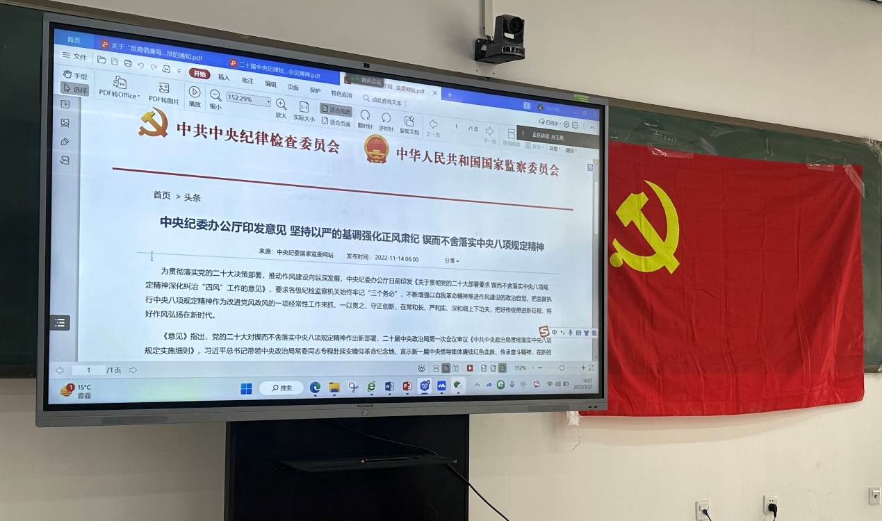 计算科学系师生联合党支部全体员工党员组织进行了“反腐倡廉每季一课”2023 年第一季度的学习,分别针对二十届中央纪律检查委员会第二次全体会议精神、中央纪委办公厅印发《关于贯彻党的二十大部署要求 锲而不舍落实中央八项规定精神深化纠治“四风”工作的意见》、学校2023 年全面从严治党工作会议精神三项重要内容进行学习。支部书记孙玉泉同志强调全体党员在做好本职工作的同时应严守纪律规矩,不断强化自我监督、自我约束,以高度责任感使命感将反腐倡廉的学习内化于心、外化于行,以实际行动体现对党忠诚、听党指挥、为党尽责。