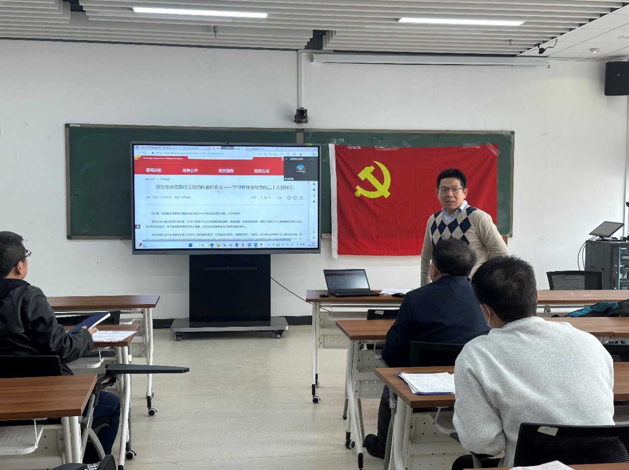 为深入学习宣传贯彻党的二十大精神,以饱满的热情迎接新学期,2023年3月22日下午,计算科学系师生联合支部在主楼E404召开支部大会开展新学期第一次集体学习,并落实组织生活会和民主评议党员工作。支部党员和发展对象参加会议,会议由支部书记孙玉泉同志主持。